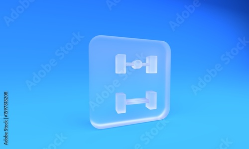 Frosted glass Chassis car icon isolated on blue background. Square frosted glass button. 3D render illustration