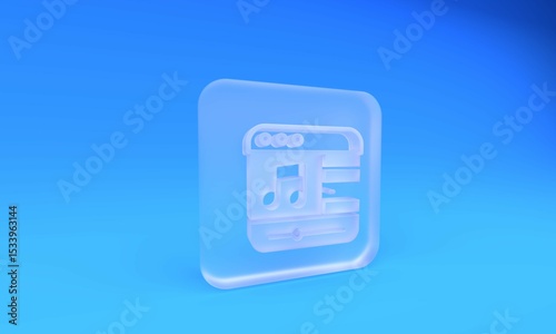 Frosted glass Music player icon isolated on blue background. Portable music device. Square frosted glass button. 3D render illustration