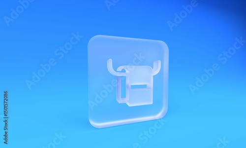 Frosted glass Towel on a hanger icon isolated on blue background. Bathroom towel icon. Square frosted glass button. 3D render illustration