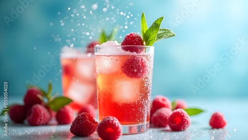 Frosty Glass of Raspberry Iced Tea with Pour Effect in Refreshing Beverage Photography