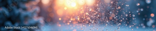 Frosty window glistens with dew, showcasing a radiant icy sky, frosted window, cold morning