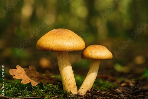 Frosty woodland fungi close-up scene