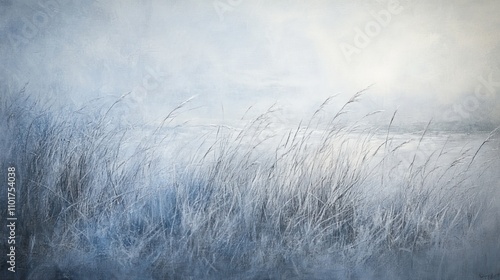 Frozen blades of grass, shrouded in a hazy blur, paint a wintery canvas. The abstract landscape, devoid of distinct forms, invites contemplation, evoking the ethereal beauty of a hushed winter's day.