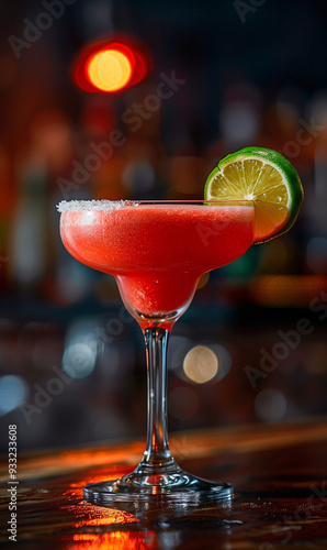Frozen Daiquiri drink is on the table in an expensive bar or restaurant, a photo for the menu or recipe