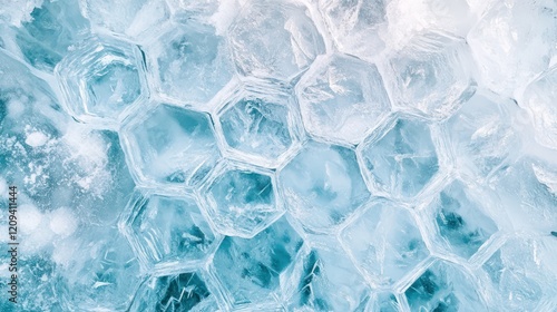 Frozen Honeycomb with Icy Blue and Crystalline Effect, Frosty Hexagonal Grid