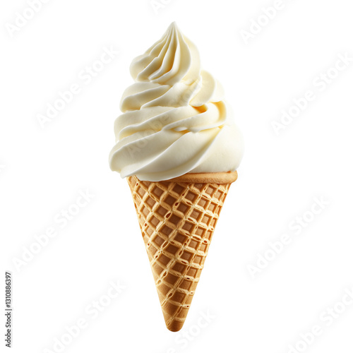 frozen yogurt with creamy white swirl served in crispy waffle bowl isolated on transparent background Generative Ai.