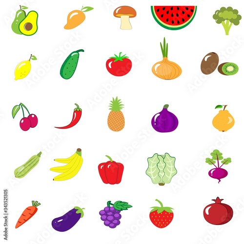 Fruit and vegetables isolated collection set icon. fruits and vegetables vector illustration