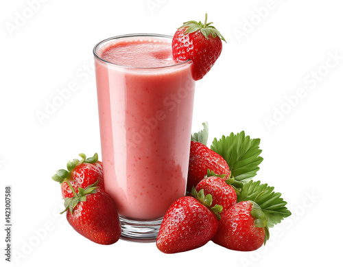 Fruit smoothie with strawberries isolated on a transparent background