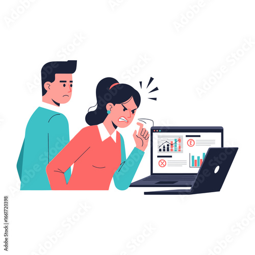 Frustration at Work: A moment of frustration and disappointment unfolds as two colleagues confront a computer screen displaying an image of a project result