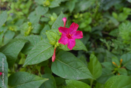 Fuchsia colored flower of Mirabilis jalapa in mid October