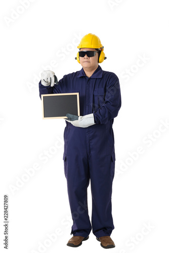 Full body portrait of a worker in Mechanic Jumpsuit isolated on white background
