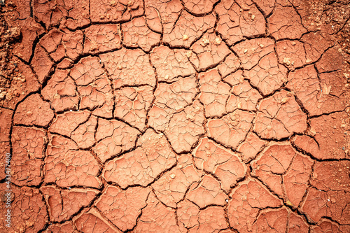 Full frame to terrain with arid climate. The surface of the land is cracked. crack soil ground texture. The natural texture of soil with cracks. Broken clay surface of barren dryland wasteland closeup