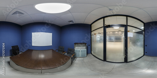 full spherical hdri seamless hdri 360 panorama in interior of empty conference hall of business room for negotiations and meetings in equirectangular projection. AR VR content