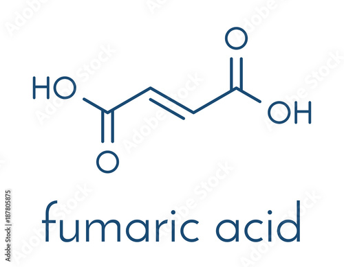 Fumaric acid molecule. Found in bolete mushrooms, lichen and iceland moss and used as food additive. Skeletal formula.