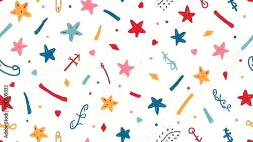 Fun and Funky Vivid 90s Line Doodle Pattern for Confetti-Themed Background Wallpaper