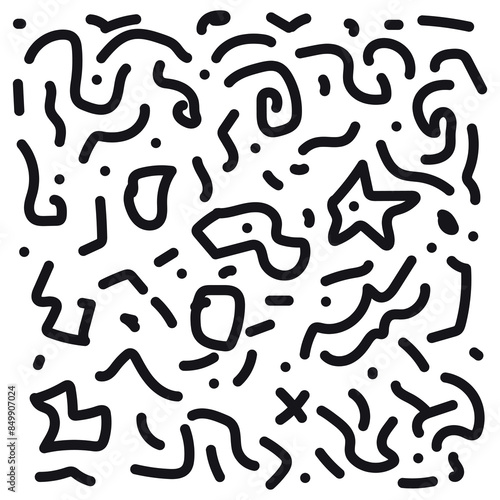 Fun Color Black line abstract doodle set seamless pattern, Creative minimalist style art background for children or trendy design with basic shapes. Simple childish scribble backdrop