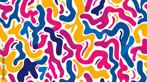 Fun colorful line doodle seamless pattern. Creative abstract style art symbol background for children or celebration design with basic shapes. Simple childish scribble wallpaper print.