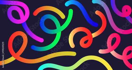 Fun colorful line doodle seamless pattern, Rainbow Gradient Shapes