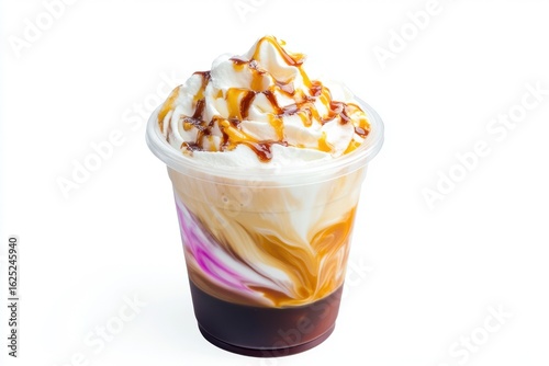 Fun iced coffee drink with quirky toppings and creamy layers, ideal for TikTok-inspired designs, stickers, or kitchen-themed art prints.