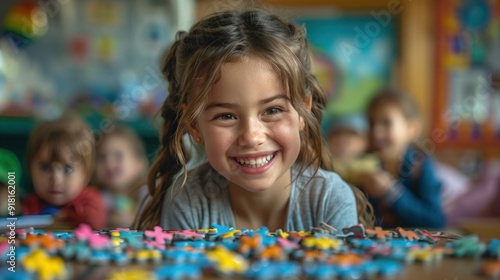 Fun Learning for Little Ones: Female Teacher Guides Children in Developmental Class with Puzzle Exercises