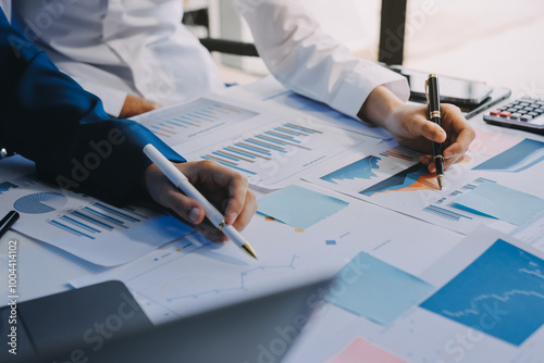 Fund managers team consultation and discuss about analysis Investment stock market at office