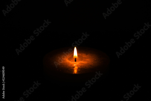 Funeral flaming candle isolated on black background