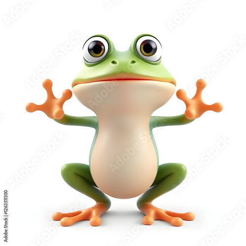 Funny 3D Frog Cartoon Character on White Background