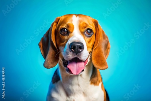Funny Beagle dog on flat color background