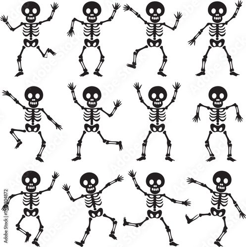 Funny Dancing Skeleton Silhouette Vector Illustration Spooky Halloween Skeleton in Dynamic Dance Pose Dancing Bones Silhouette for Halloween Party Design Creepy Cartoon Skeleton Vector in Motion H