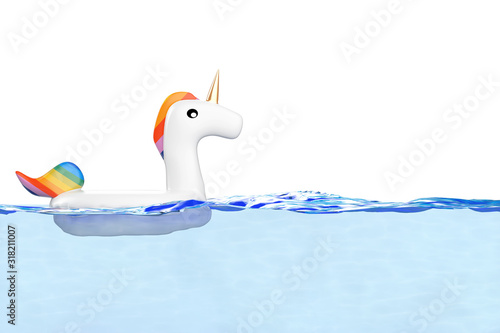 Funny Inflatable Unicorn Ring for Summer Pool in Pool or Sea Water. 3d Rendering