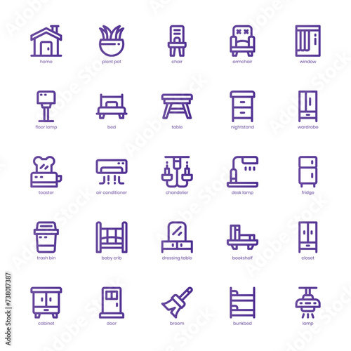 Furniture and Decoration icon pack for your website, mobile, presentation, and logo design. Furniture and Decoration icon basic line gradient design. Vector graphics illustration and editable stroke.