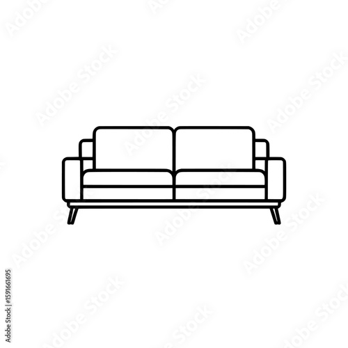 Furniture for the living room is represented by a modern illustration of a couch silhouette, which takes the form of a sofa outline icon