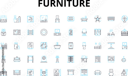 Furniture linear icons set. Comfortable, Stylish, Functional, Durable, Modern, Antique, Rustic vector symbols and line concept signs. Chic,Elegant,Cozy illustration