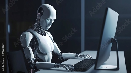 future concept of a humanoid robot with artificial intelligence using a computer. The Generative AI