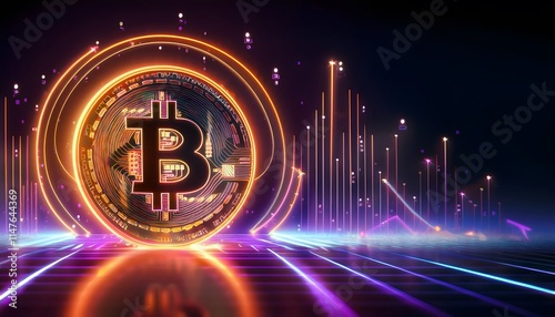 Future Consumer and technology concept: AI in finance, digital currency interface with glowing graphs.
