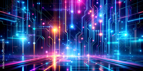 Future technology line background and light effect, cyberpunk style background material with a sense of technology
