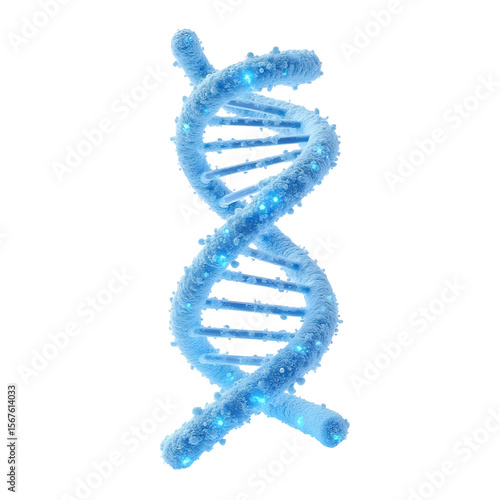 Futuristic 3 D Render of a Light Blue D N A Helix with Glowing Particles Isolated on a Transparent Background