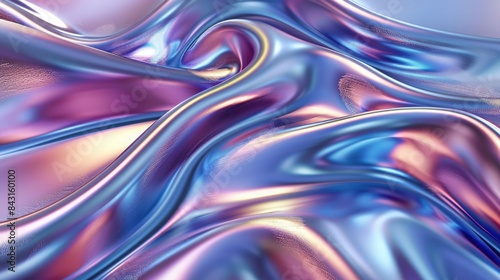 Futuristic 3D design with fluid metallic waves, iridescent colors shifting with light, evoking motion and fluidity. 3D futuristic style pattern