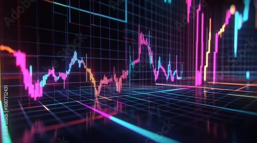 Futuristic 3D Line Graph Illustrating 2024 Tech Market Trends for Finance Visualization
