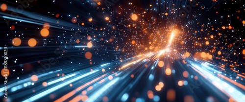 Futuristic 3D Rendering of Hyperloop Speed in a Mega City at Night with Vibrant Light Trails and Neon Colors