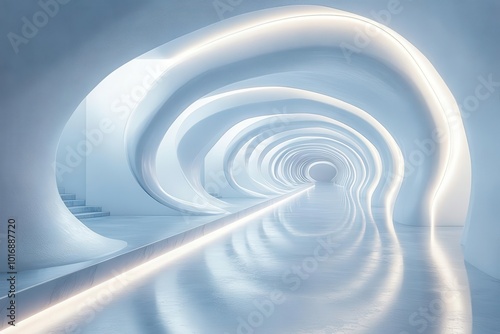 futuristic 3d room with a white abstract space theme illuminated by neon lights creating an immersive corridorlike experience ideal for showcasing advanced technology and innovation