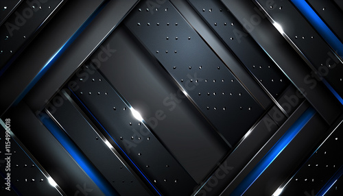 Futuristic abstract background featuring dark metallic chevrons and glowing blue accent
