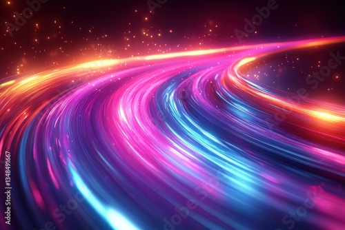 Futuristic Abstract Background with Glowing Neon Light Trails in Pink Blue Purple High Speed Bokeh Dynamic Motion Art