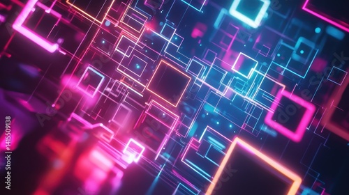 Futuristic Abstract Background with Glowing Neon Squares and Lines Design