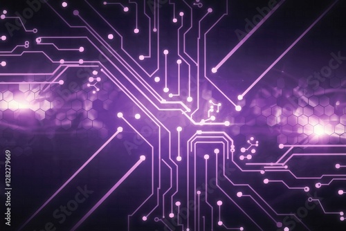 Futuristic Abstract Circuit Board Design Glowing Purple Lines Hexagonal Patterns - High-Tech Digital Background Technology, Innovation, Data Visualization