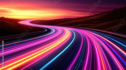 Futuristic abstract circuit board featuring streaming colorful neon lines, ideal for showcasing AI-driven technology and innovative big data solutions.
