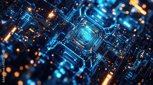 Futuristic Abstract Circuit Board with Bright Lights and Detailing
