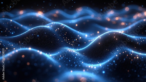 Futuristic Abstract Design with Glowing Waveforms and Dynamic Particles in Minimalist Style