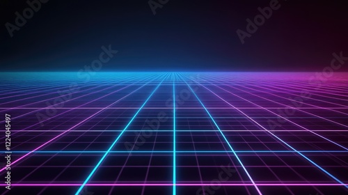 Futuristic abstract digital grid glowing in electric blue and purple, fading into dark space.