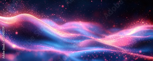 Futuristic Abstract Digital Landscape Background with Glowing Particles and Flowing Lines in Neon Colors